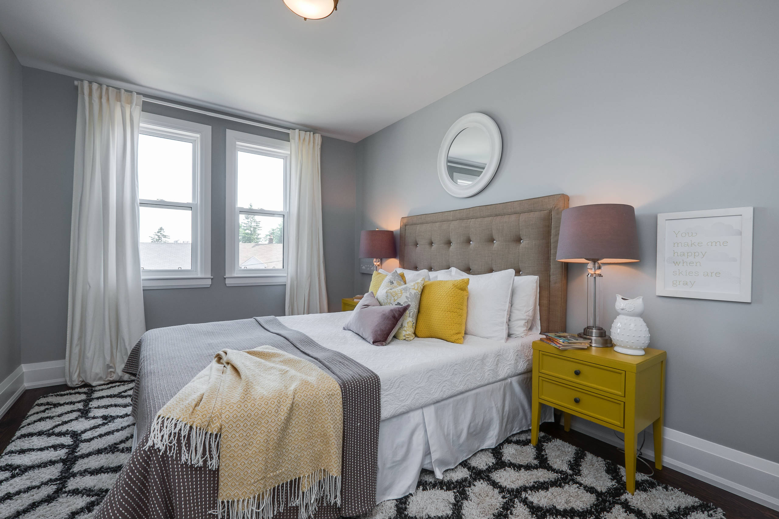 Bedrooms in yellow and gray look really sophisticated and elegant, and they are not something you see very often.
